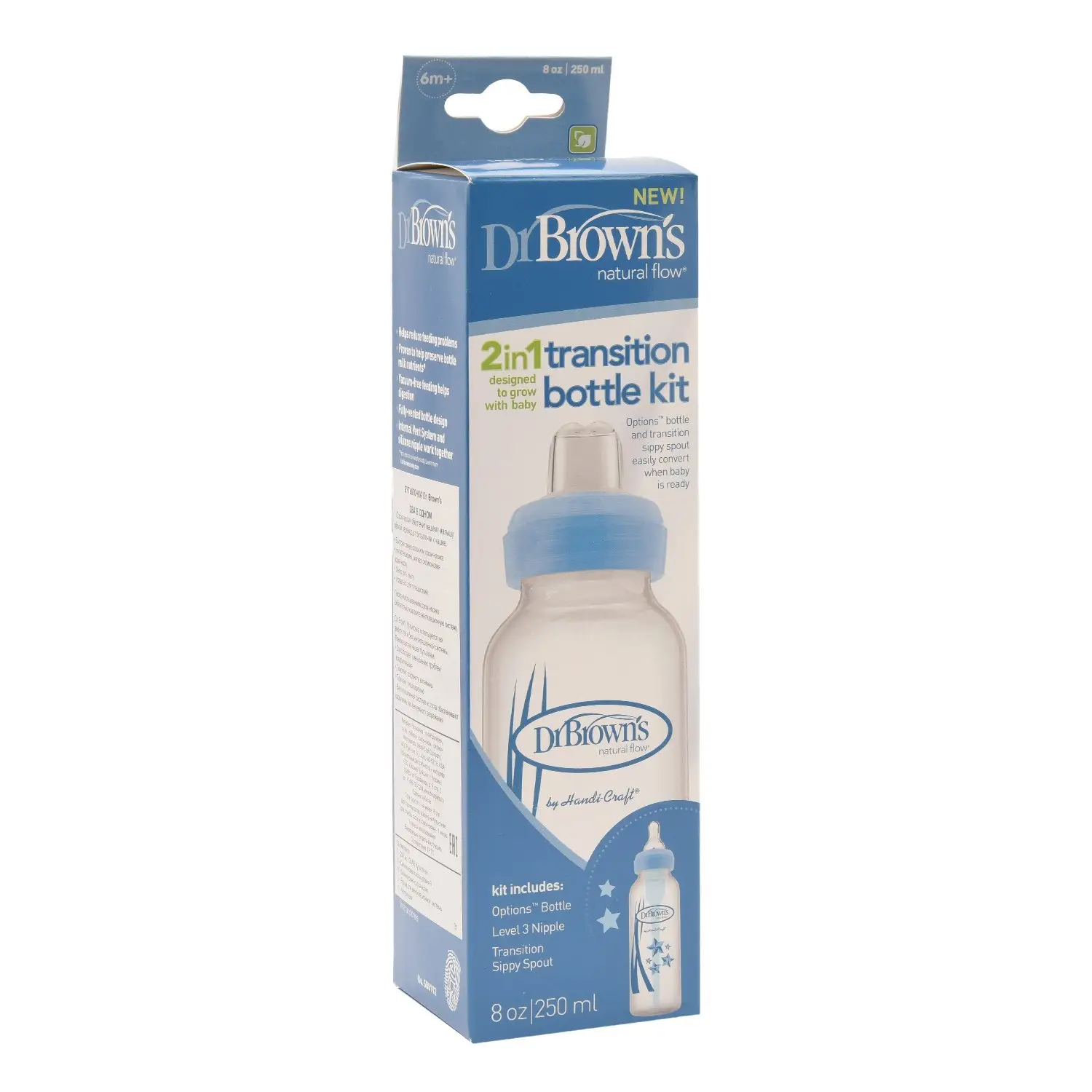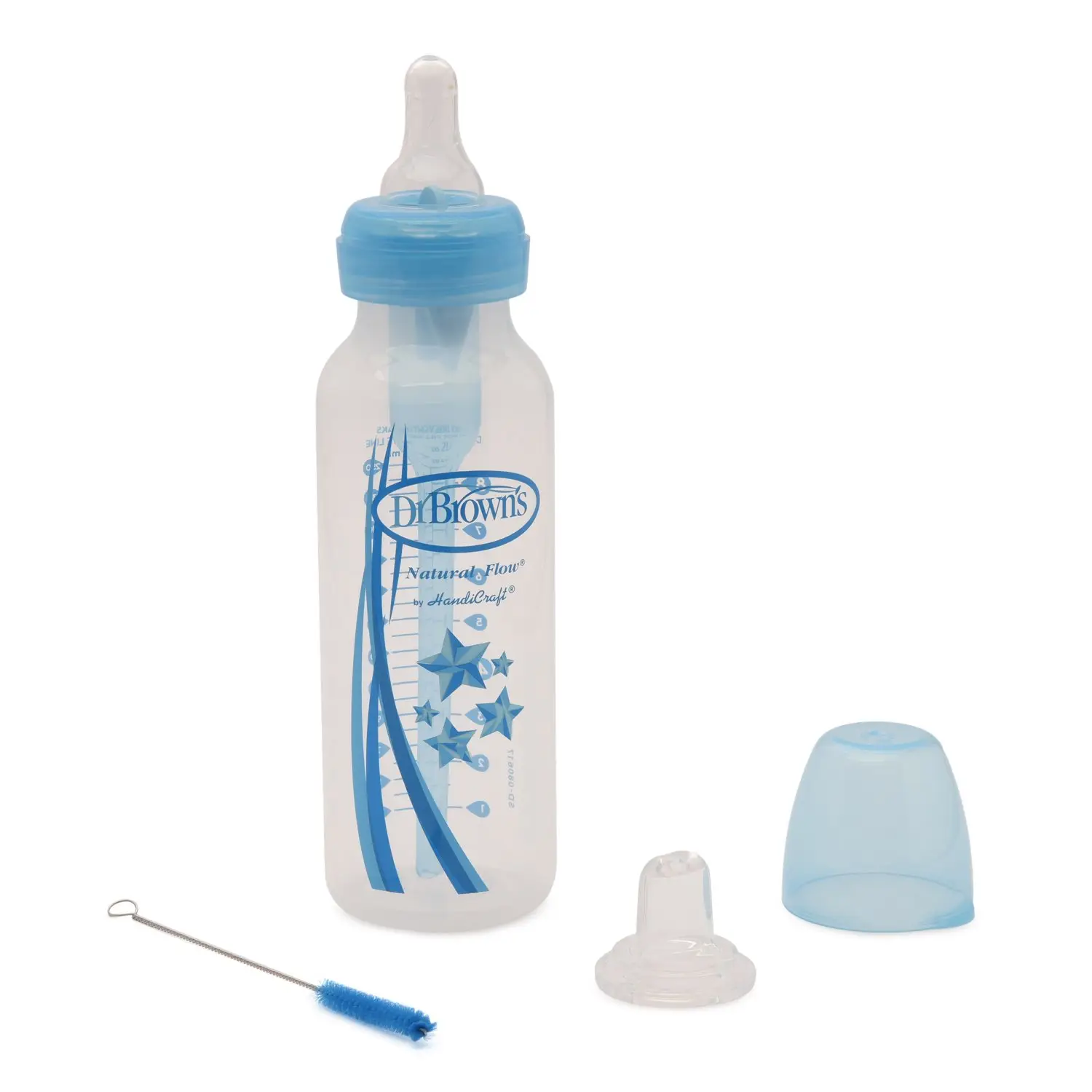 Бутылочка антиколиковая с узким горлышком Dr. Brown's Option 250 мл + соска и носик полипропилен синий