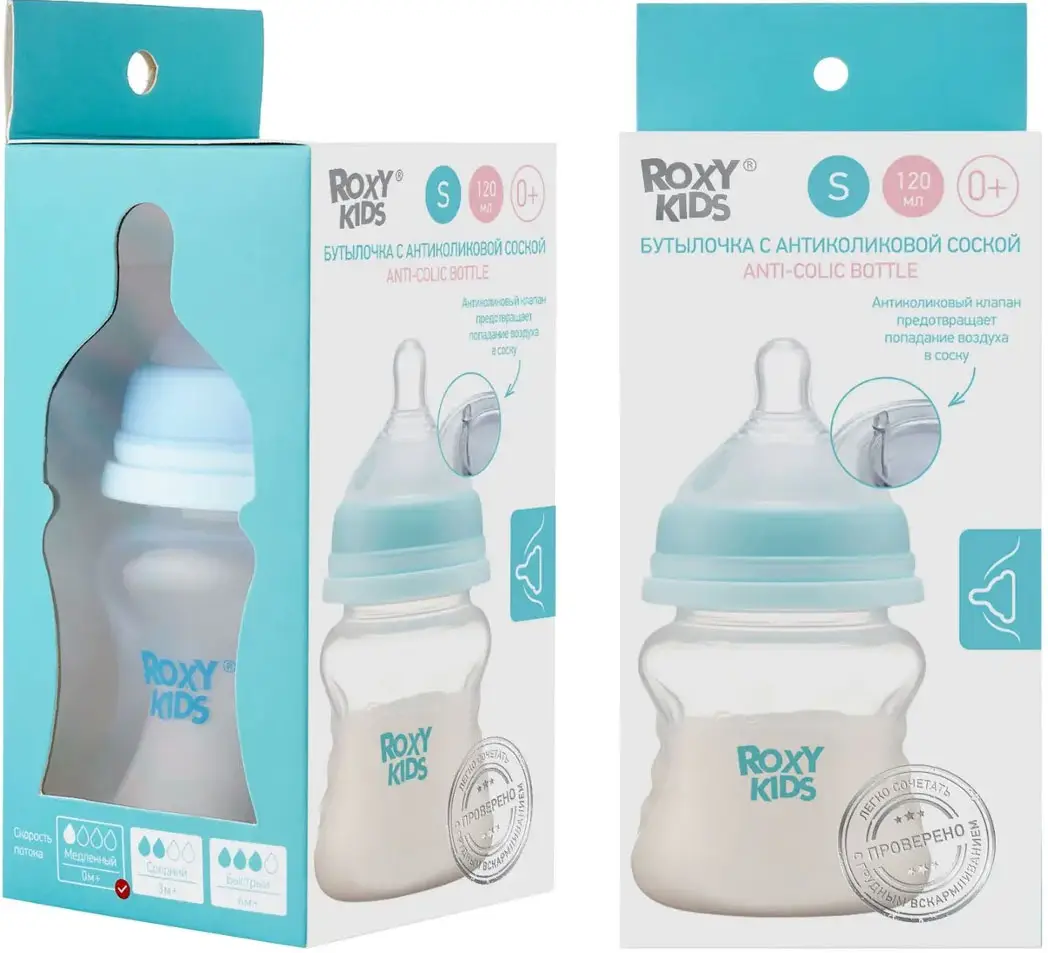 Бутылочка для кормления от бренда Roxy Kids изготовлена из полипропилена и несодержит бисфенола-А.