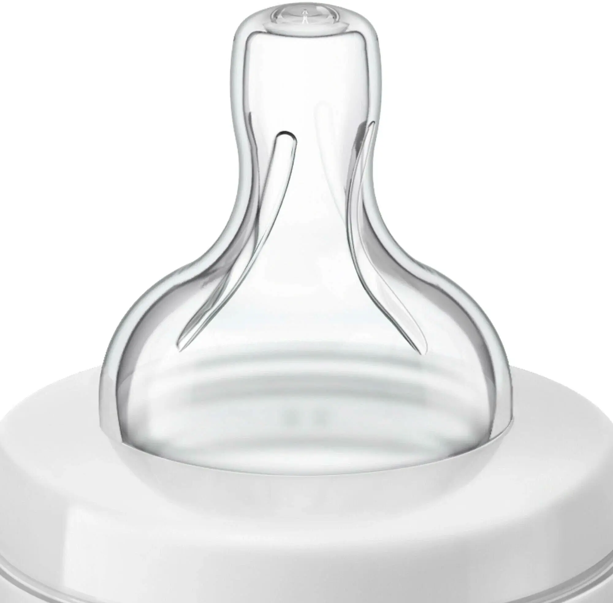 Форма соски бутылочки от бренда Philips Avent обеспечивает надёжный захват, а ребра жёсткости предотвращают слипание соски и обеспечивают беспрерывное кормление.