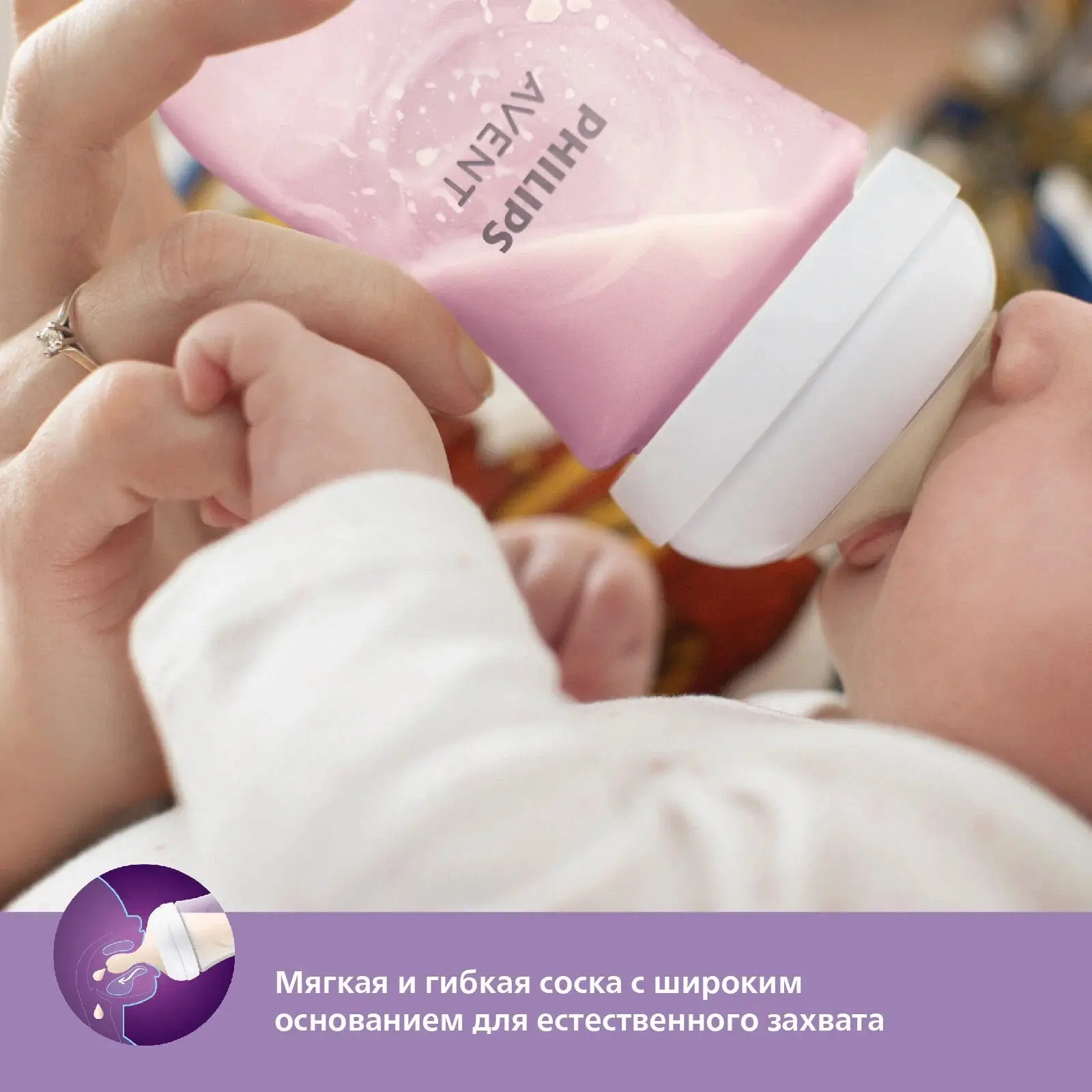 Бутылочка серии Natural с ультрамягкой соской имитирует ощущения как при грудном вскармливании.