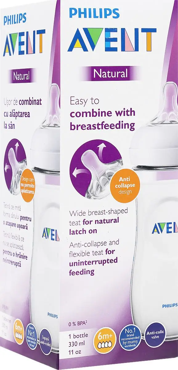 Бутылочка Philips Avent серии Natural с мягкой соской с рёбрами жёсткости создана для растущих деток.