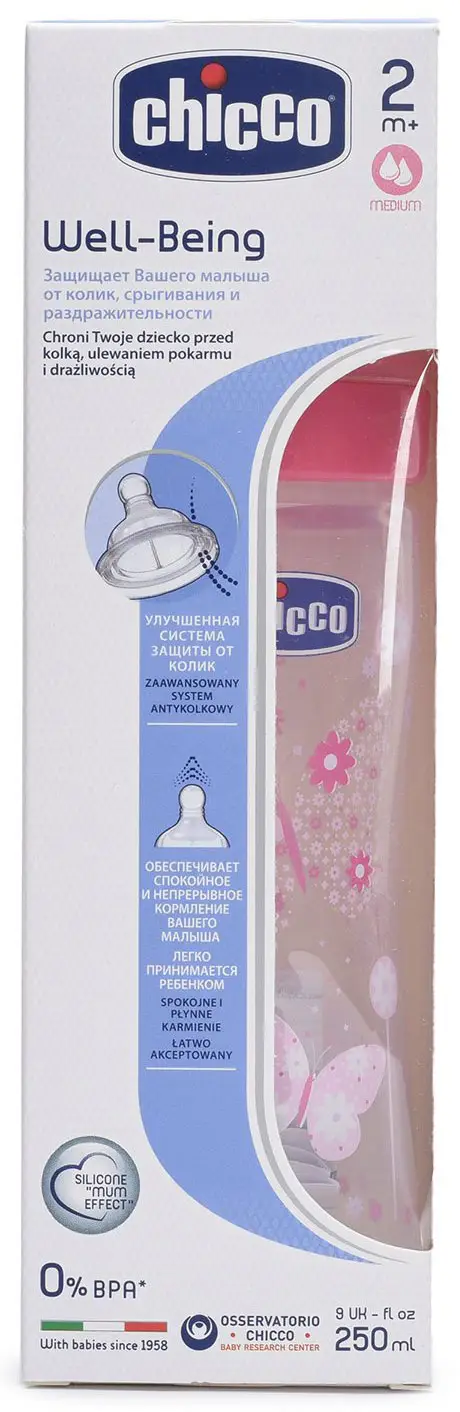 Бутылочка с силиконовой соской Chicco Well-Being Girl 250 мл 2m+