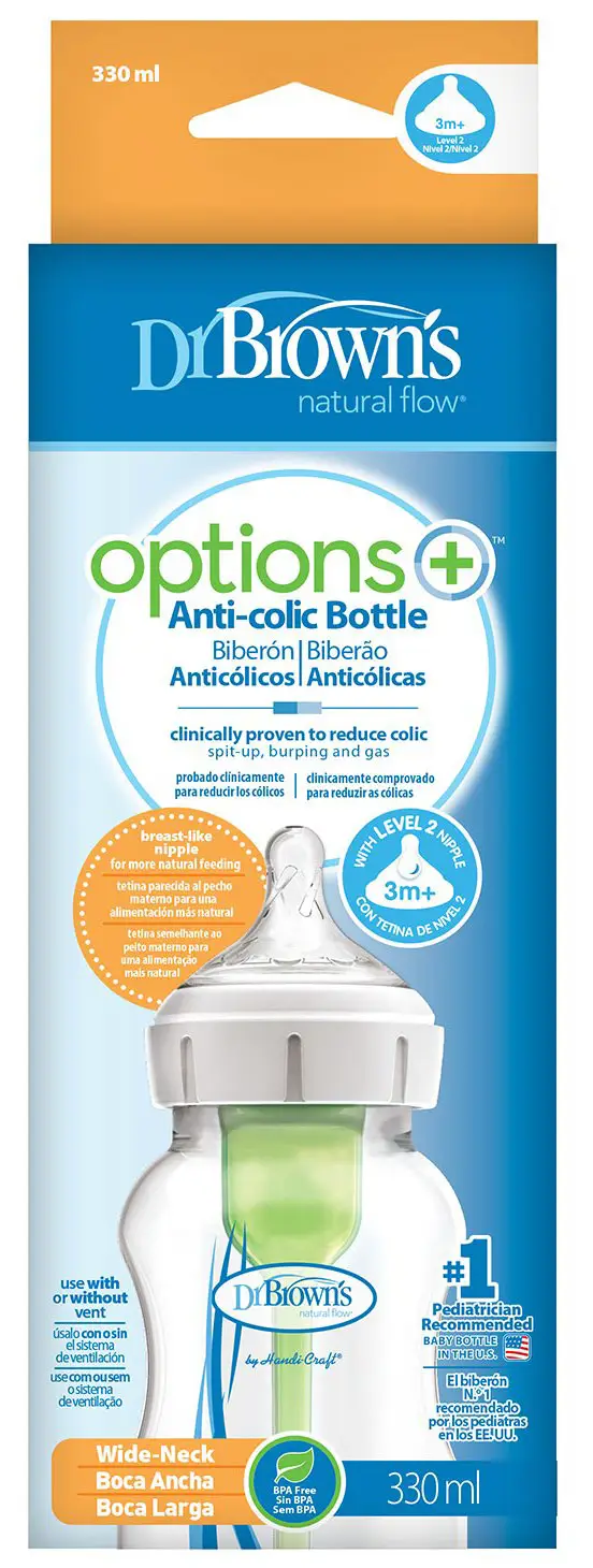 Dr. Brown's Бутылочка полипропиленовая с широким горлом Options+ (WB11600), 330 мл, с 3 месяцев, прозрачный