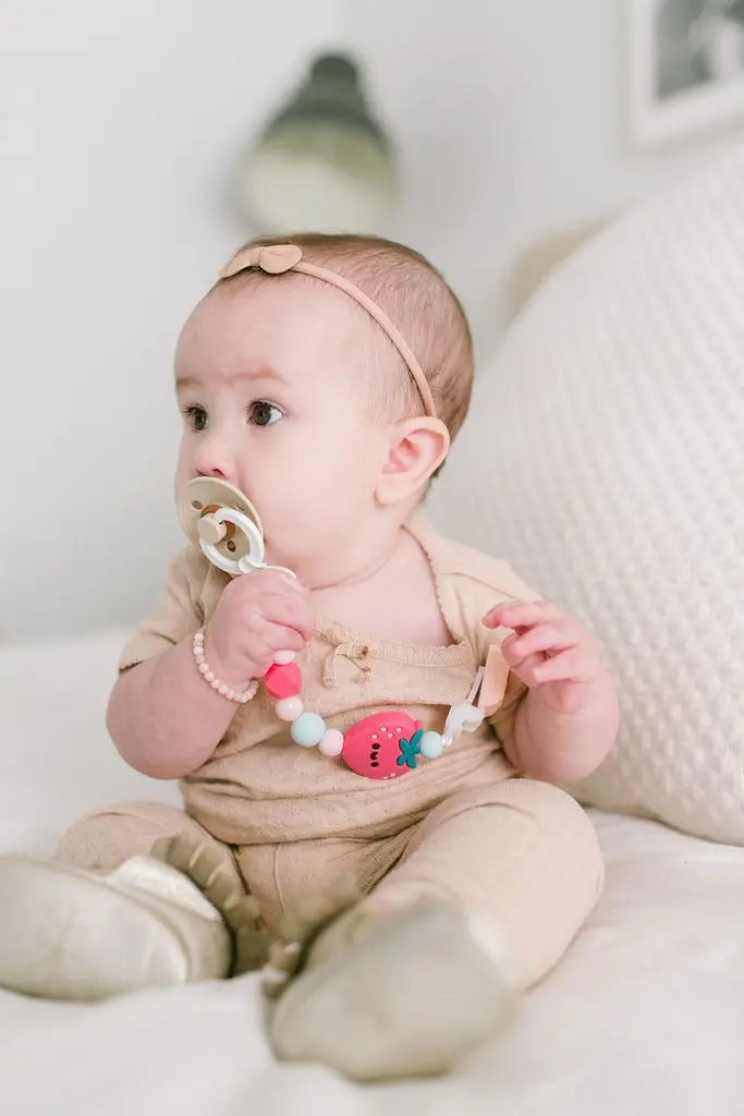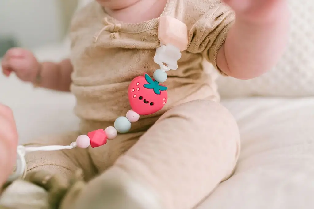 Просто подвесьте пустышку или игрушку ребёнка к одному концу, а затем прикрепите противоположный конец к одежде, одеялам, автокреслам и мног...