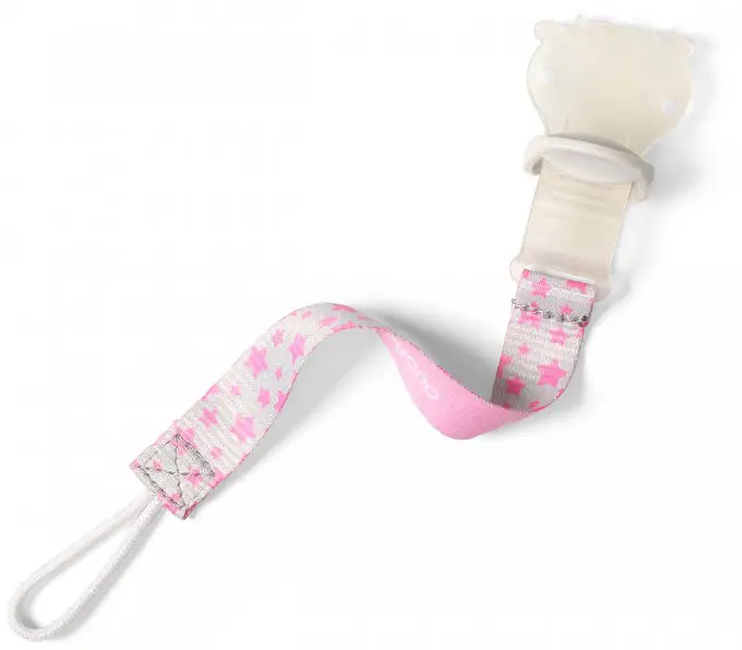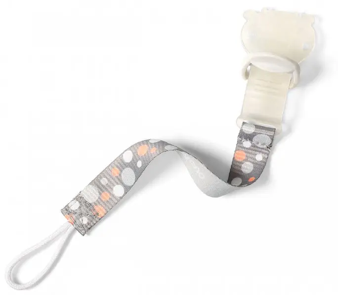 Держатель для пустышки в виде ленточки с прищепкой, это помощь каждому родителю – благодаря держателю можно попрощаться с проблемой потери пустышки.