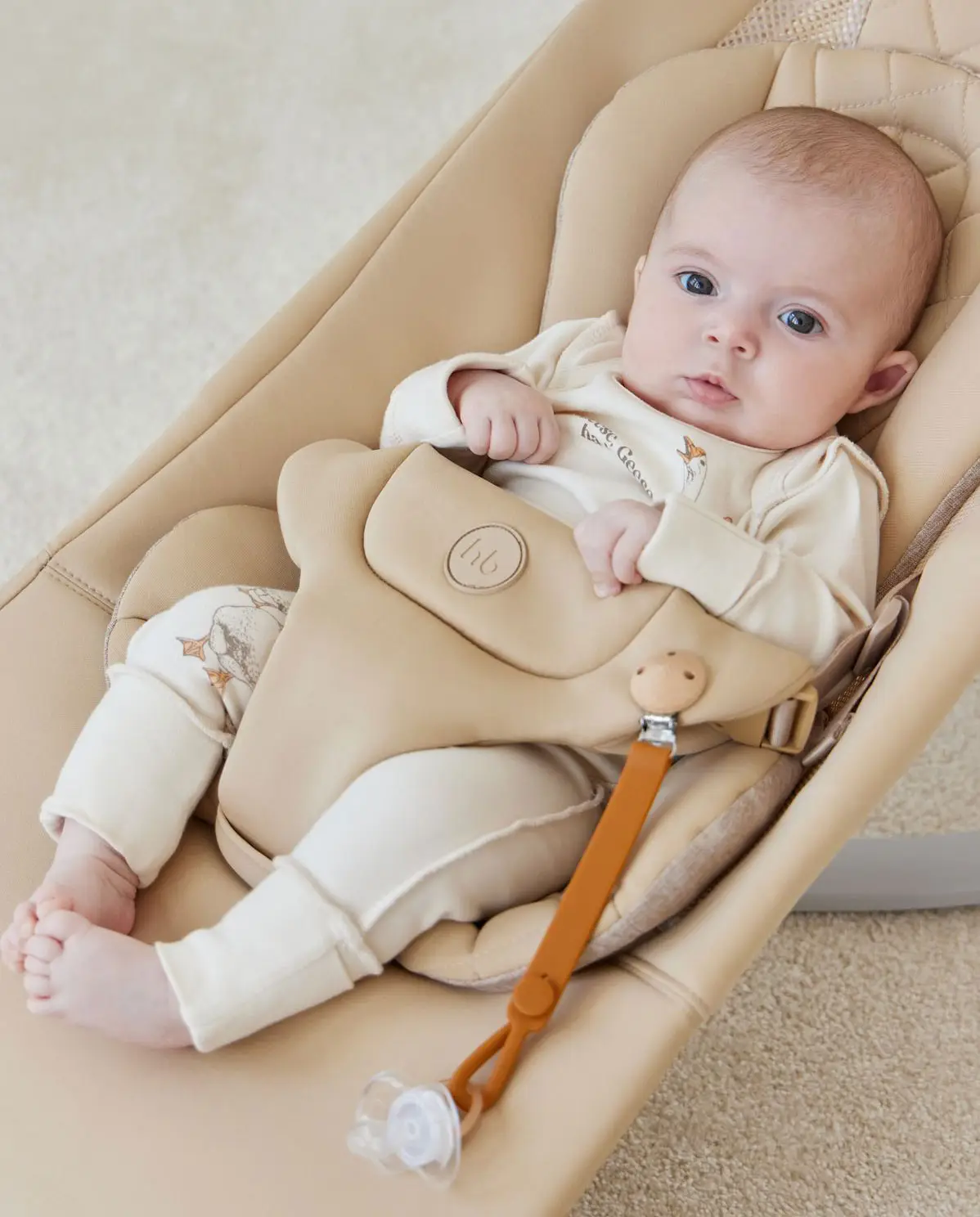 Стильный аксессуар обеспечивает гигиену и здоровье ребёнка. Пустышка и прорезыватель не потеряются и останутся чистыми благодаря мягкому силиконовому ремешку, который приятно грызть.