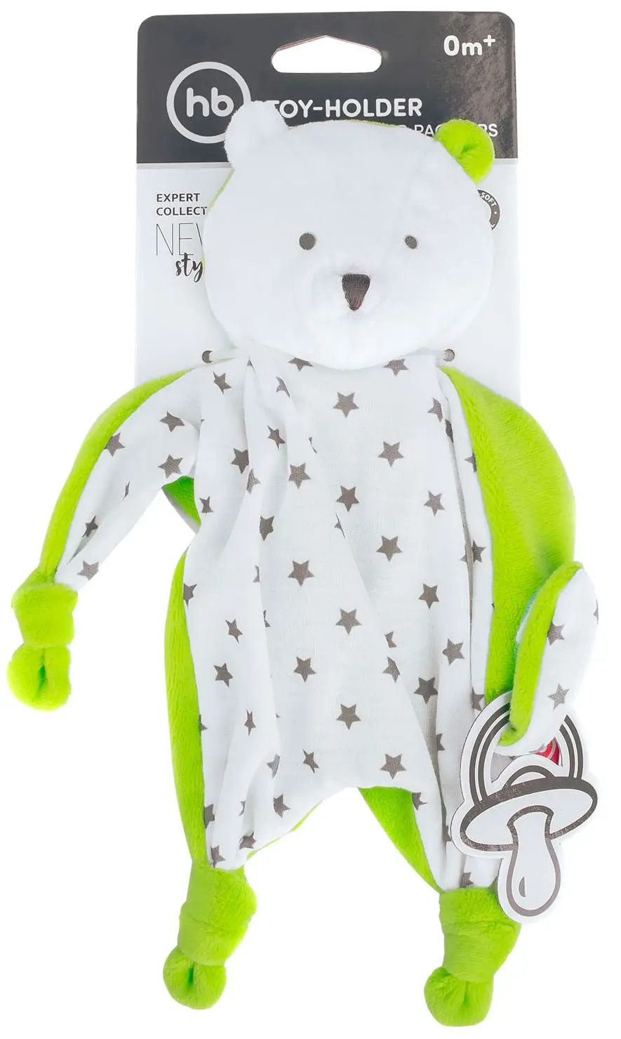 С ним можно поиграть, пообниматься и сладко поспать, а ещё в его лапке можно зафиксировать пустышку, и она не потеряется.