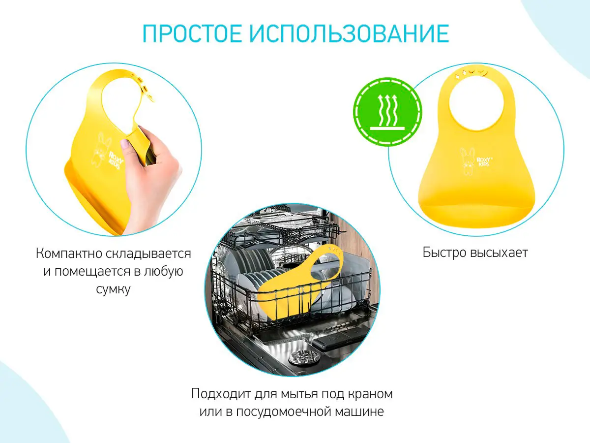 - материал гипоаллергенный и не содержит бисфенол А – ничего страшного, если ребенок потянет нагрудник в рот;