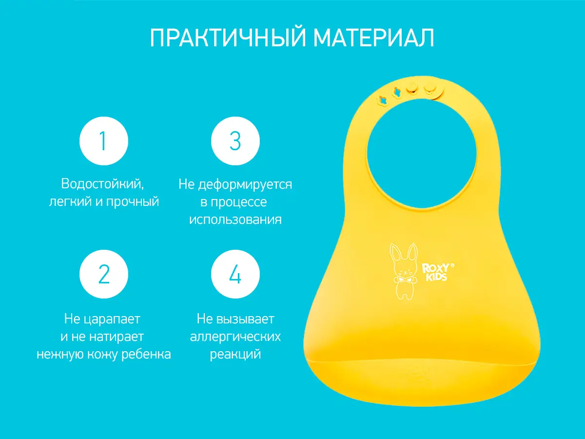 Мягкий нагрудник от ROXY KIDS не доставит неудобств малышу и сэкономит время мамы на уборке и стирке. Мягкий нагрудник с карманом для крошек...