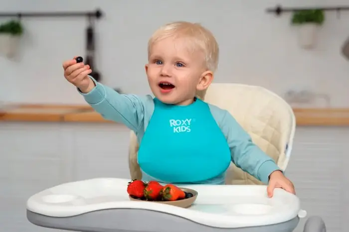 Мягкий нагрудник от Roxy Kids не доставит неудобств малышу и сэкономит время мамы на уборке и стирке.