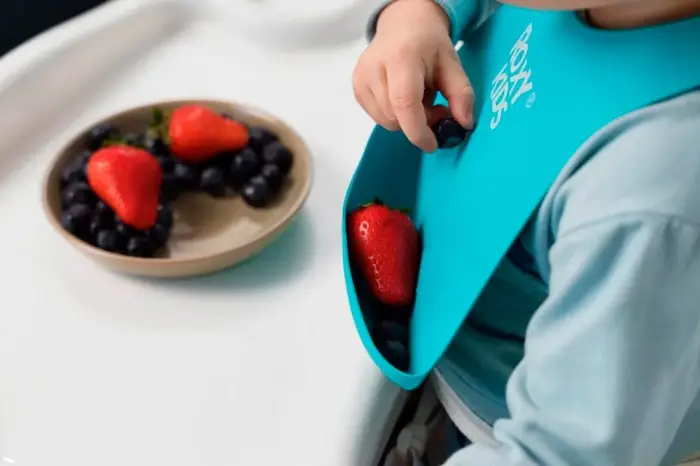 - материал гипоаллергенный и не содержит бисфенол А – ничего страшного, если ребенок потянет нагрудник в рот;