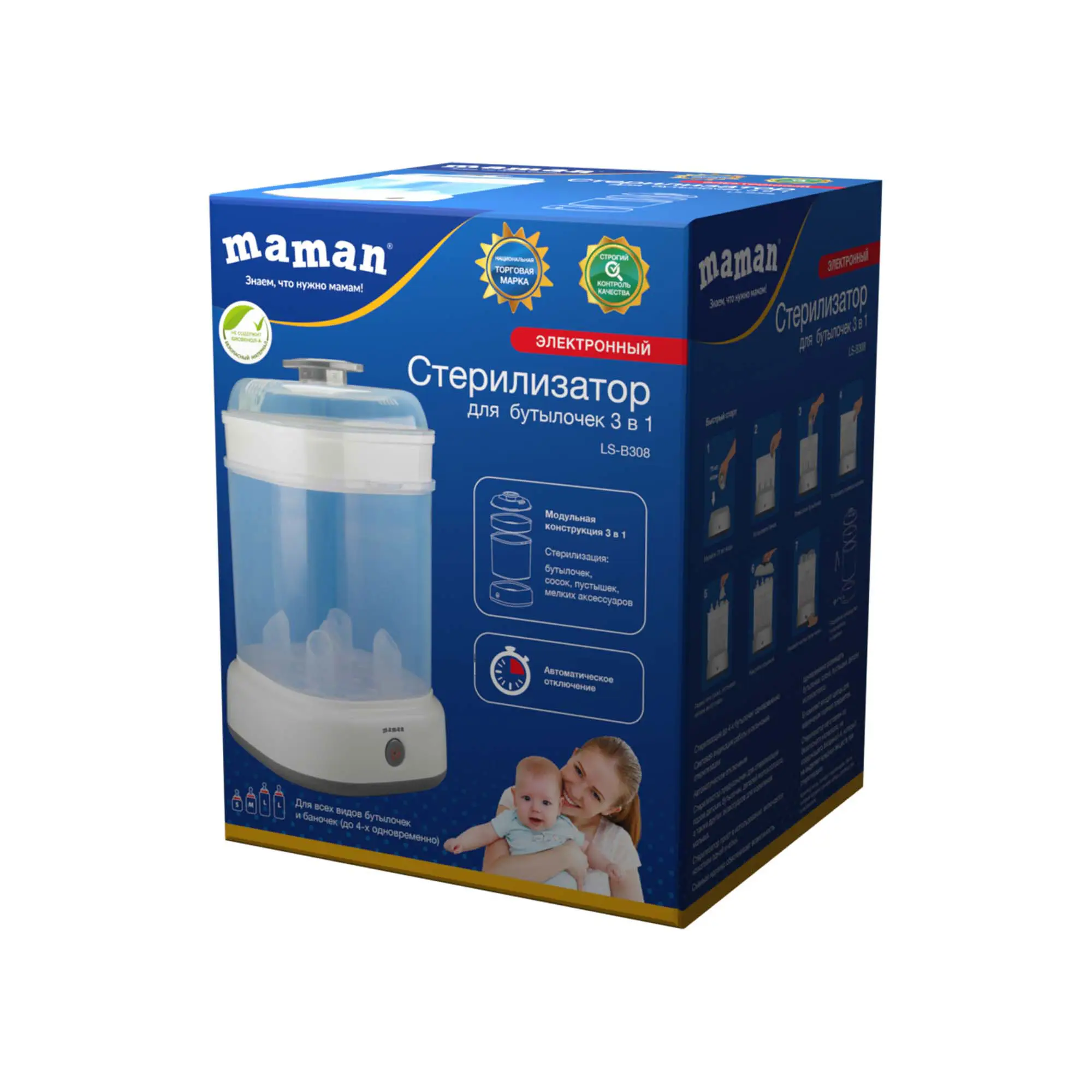 Стерилизатор для Maman предназначен для стерилизации бутылочек для детского питания всех видов.