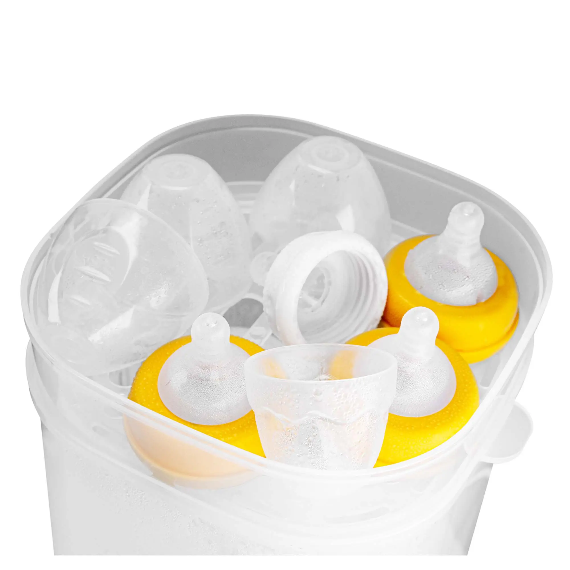- съемная корзина обеспечивает возможность одновременно размещать бутылочки, соски, пустышки, детали молокоотсоса;