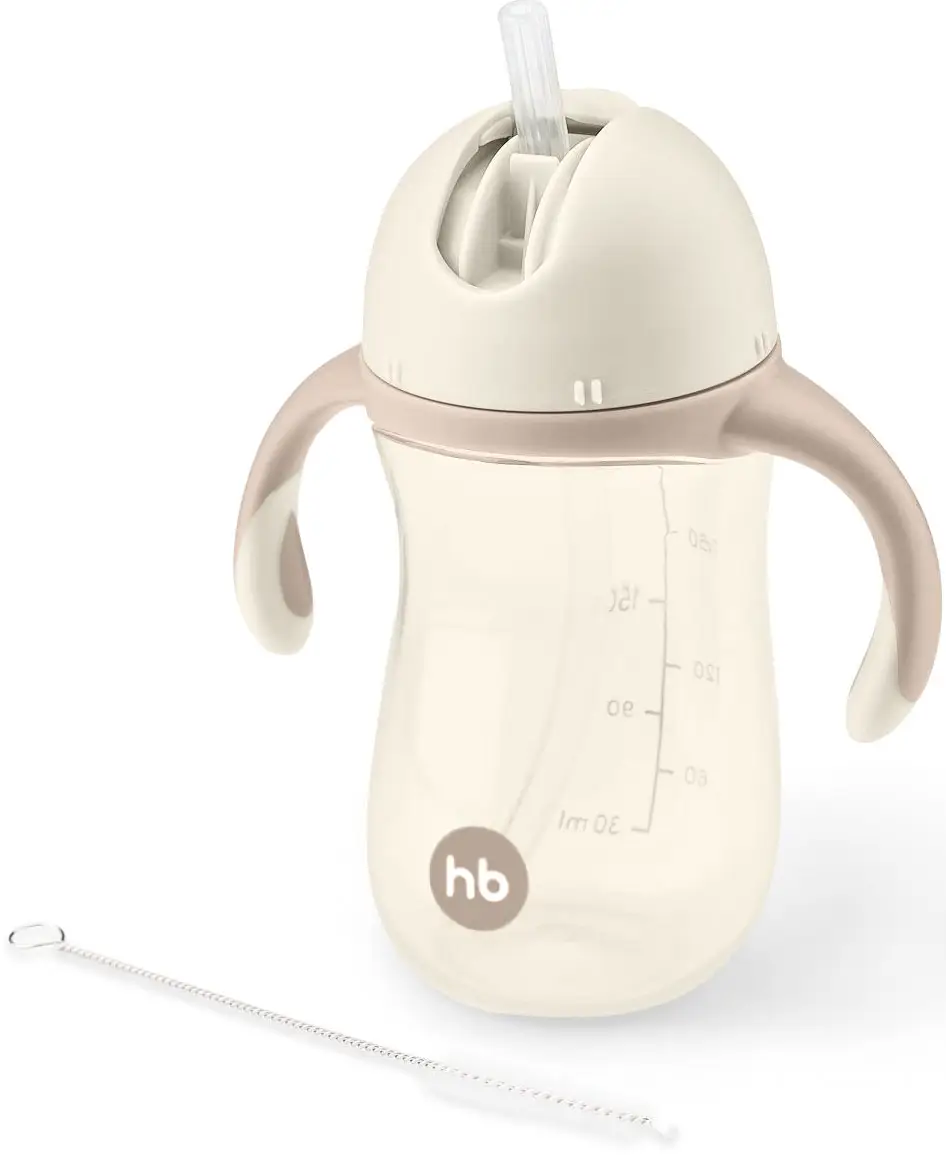 Поильник с трубочкой и ручками Happy Baby 2.0, 260 мл, milky