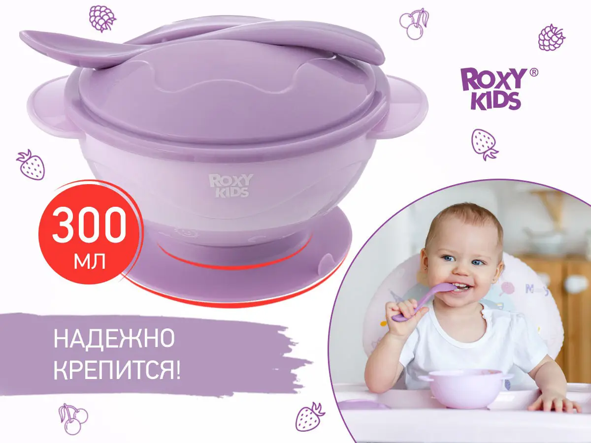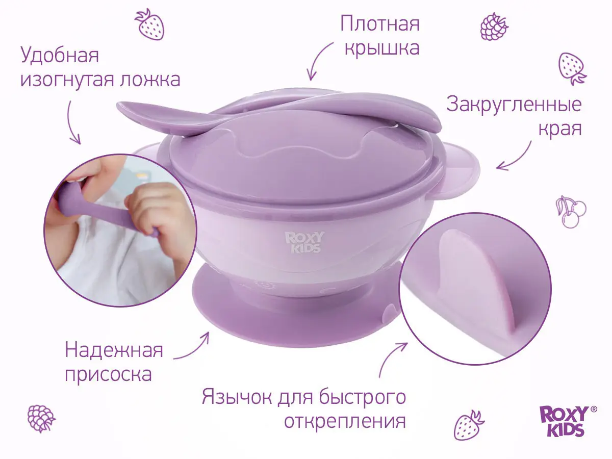 Набор для кормления Roxy Kids тарелка на присоске, крышка и ложка, лавандовый