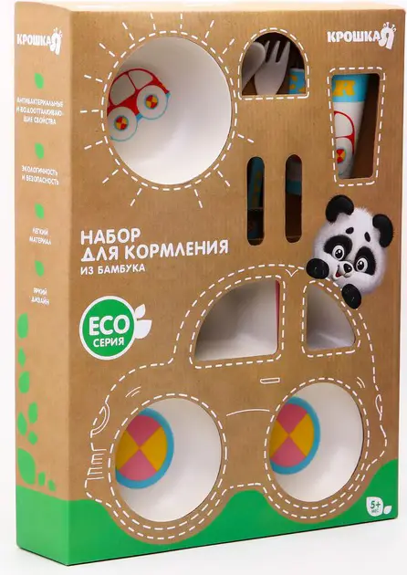 Набор бамбуковой посуды Крошка Я Машинка 5 предметов