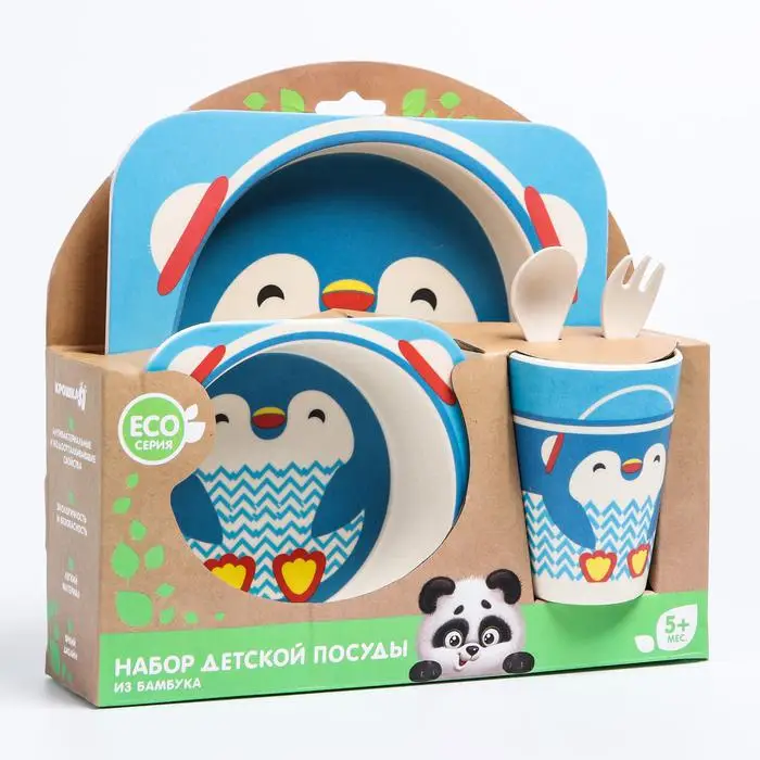 Набор бамбуковой посуды Крошка Я Пингвин 5 предметов