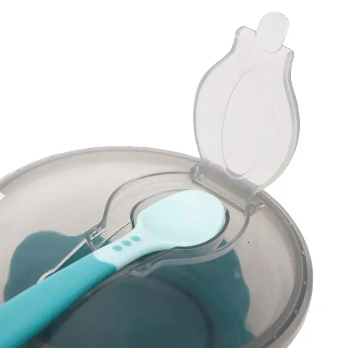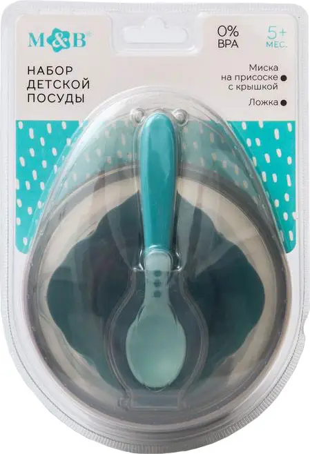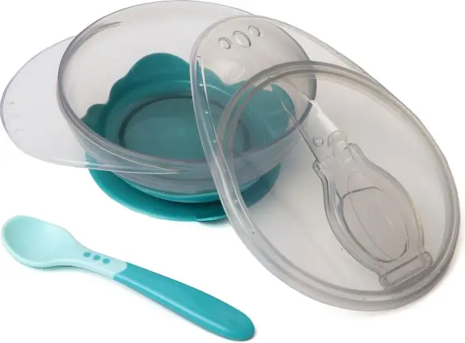 Набор для кормления миска на присоске с крышкой и ложка бирюзовый