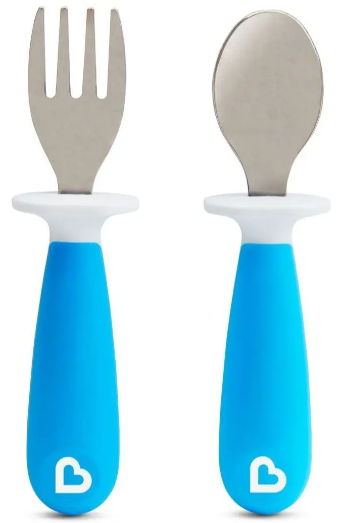 столовые приборы из нержавеющей стали помогают малышам перейти на полноразмерную посуду, похожую на взрослую.
