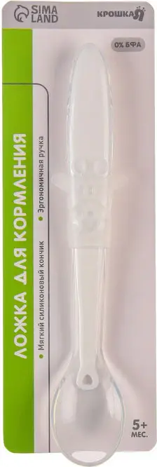 Силиконовая ложечка поможет приучить малютку к самостоятельному приёму пищи. Товар изготовлен из безопасных материалов — гипоаллергенного силикона и пластика, пригодного для производства детской посуды.