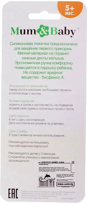 Силиконовая ложечка поможет приучить малютку к самостоятельному приёму пищи. Она идеально подходит для первого прикорма: мягкий и эластичный наконечник не ранит нежные дёсны ребёнка. Удобная ручка легко помещается в ладони малютки. Товар изготовлен из безопасных материалов – гипоаллергенного силикона и пластика, пригодного для производства детской посуды. Не содержит вредное вещество бисфенол А.
