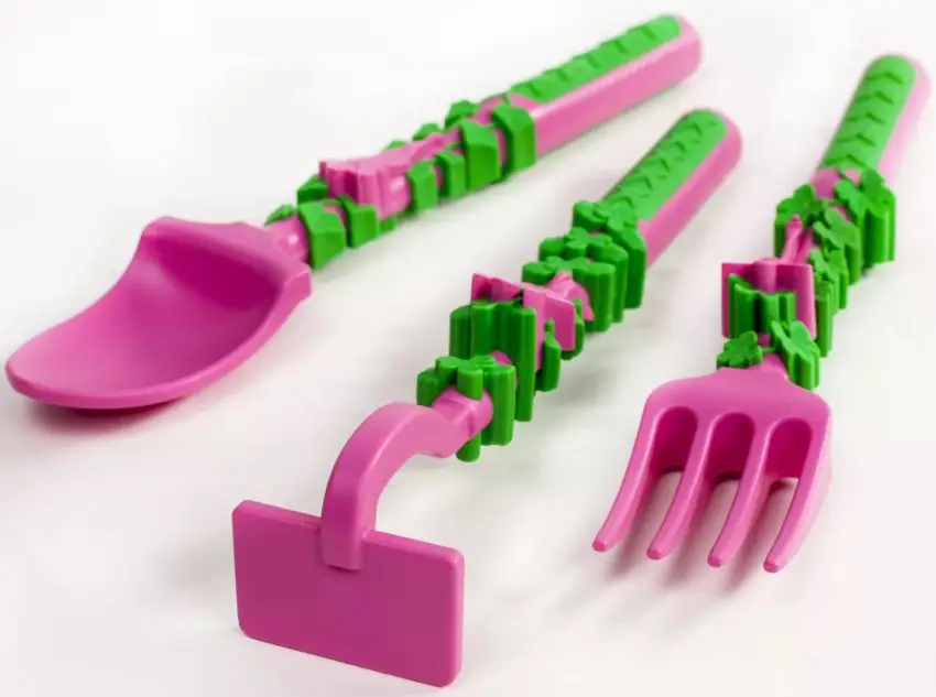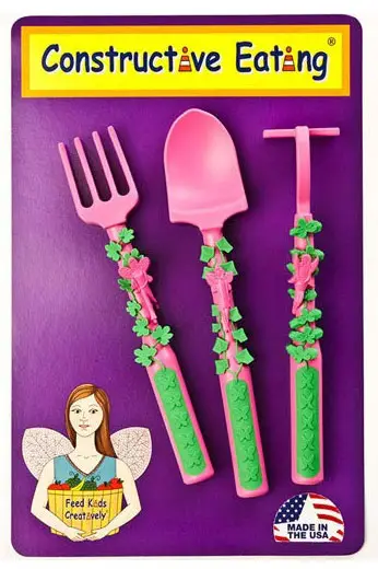 Набор из трех столовых приборов Constructive Eating Серия Волшебный сад фиолетовая, розовый