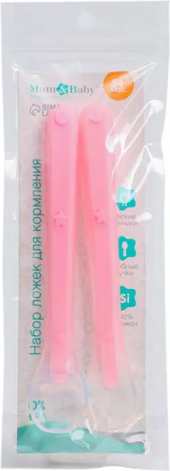 Набор силиконовых ложек для кормления розовый 2 штуки