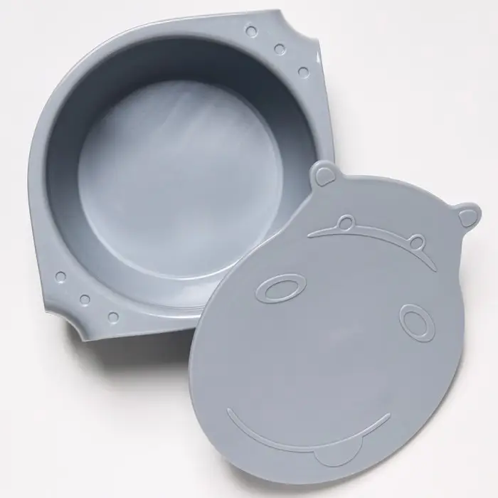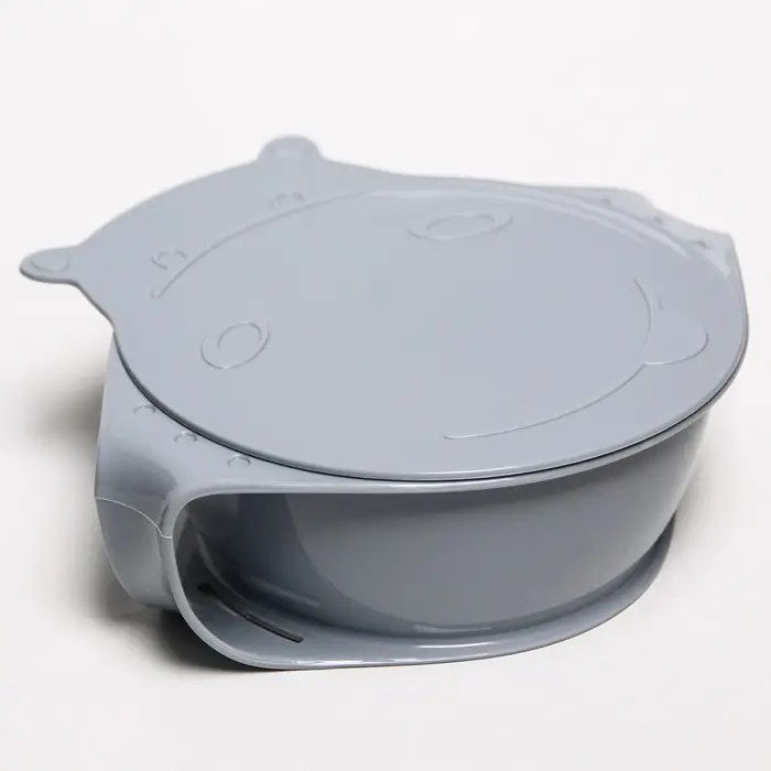 Забавный и милый бегемотик понравится и мамам, и малышам. Прочное широкое основание делает тарелочку устойчивой на поверхности. Малышу будет проще научиться набирать полную ложку благодаря высоким бортикам. Эргономичные ручки оптимальны для детских ладошек. Остатки обеда можно убрать в холодильник – крышка плотно прилегает к корпусу и сохранит свежесть продуктов.