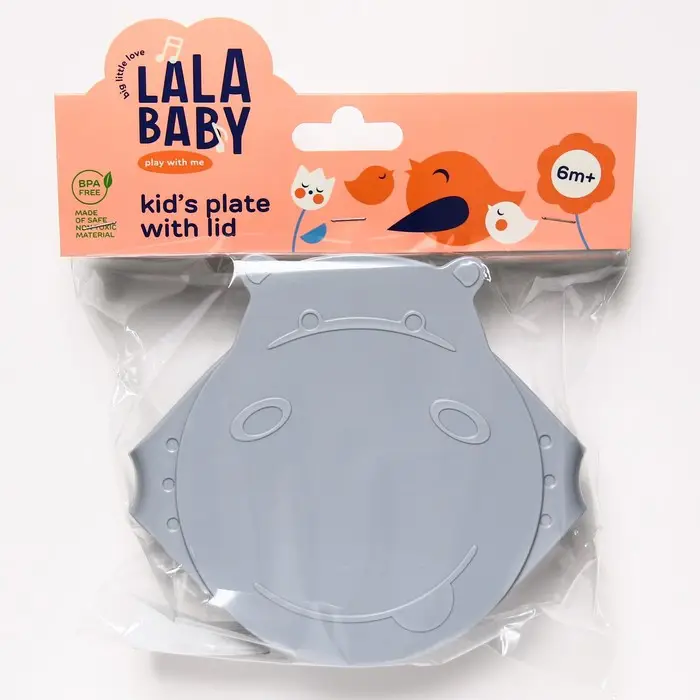 Детская тарелка Little Angel Lalababy Play with Me Hello, Hippo! с крышкой, серый