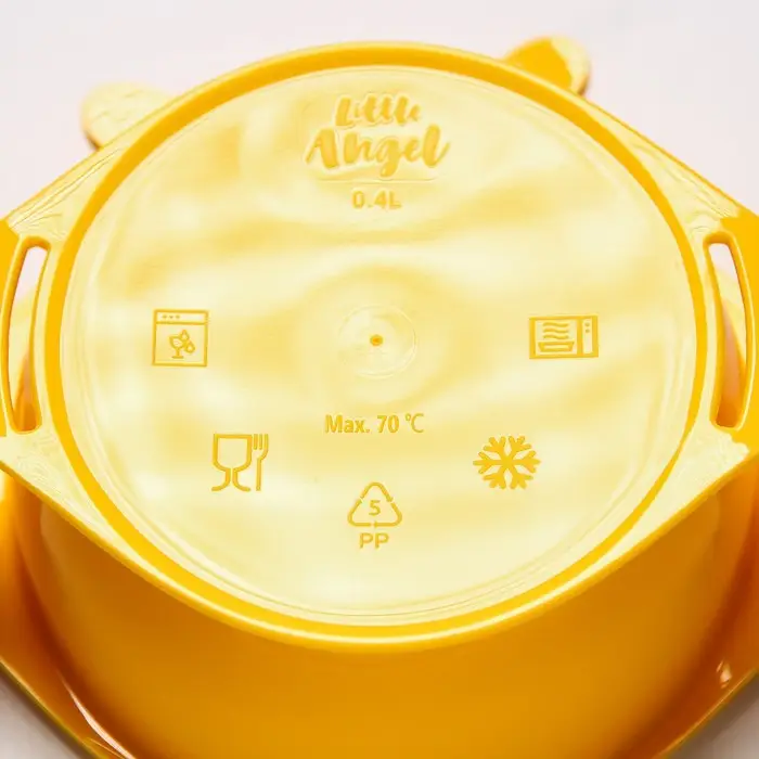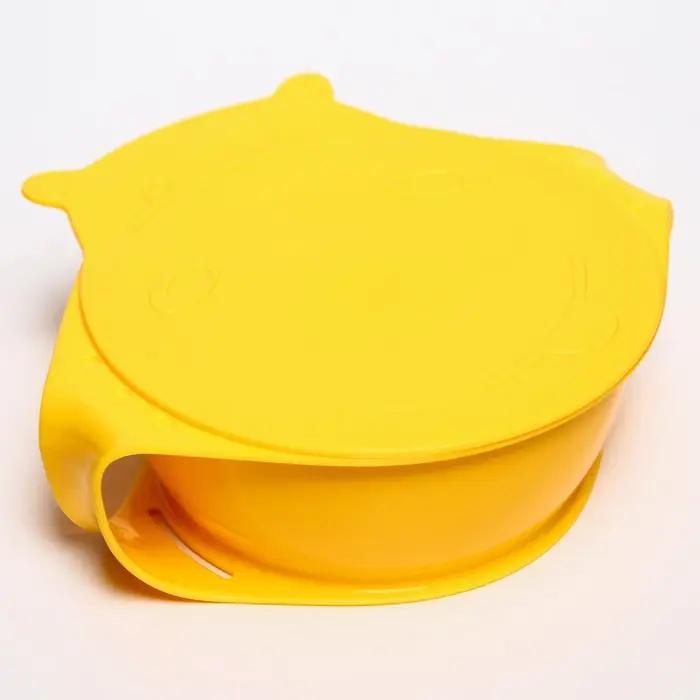 Забавный и милый бегемотик понравится и мамам, и малышам. Прочное широкое основание делает тарелочку устойчивой на поверхности. Малышу будет проще научиться набирать полную ложку благодаря высоким бортикам. Эргономичные ручки оптимальны для детских ладошек. Остатки обеда можно убрать в холодильник – крышка плотно прилегает к корпусу и сохранит свежесть продуктов.