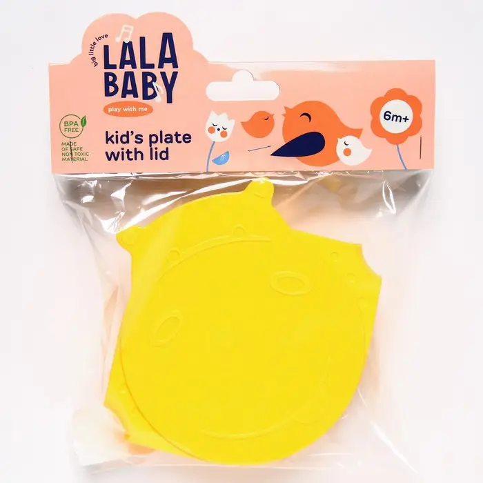 Детская тарелка Little Angel Lalababy Play with Me Hello, Hippo! с крышкой, желтый