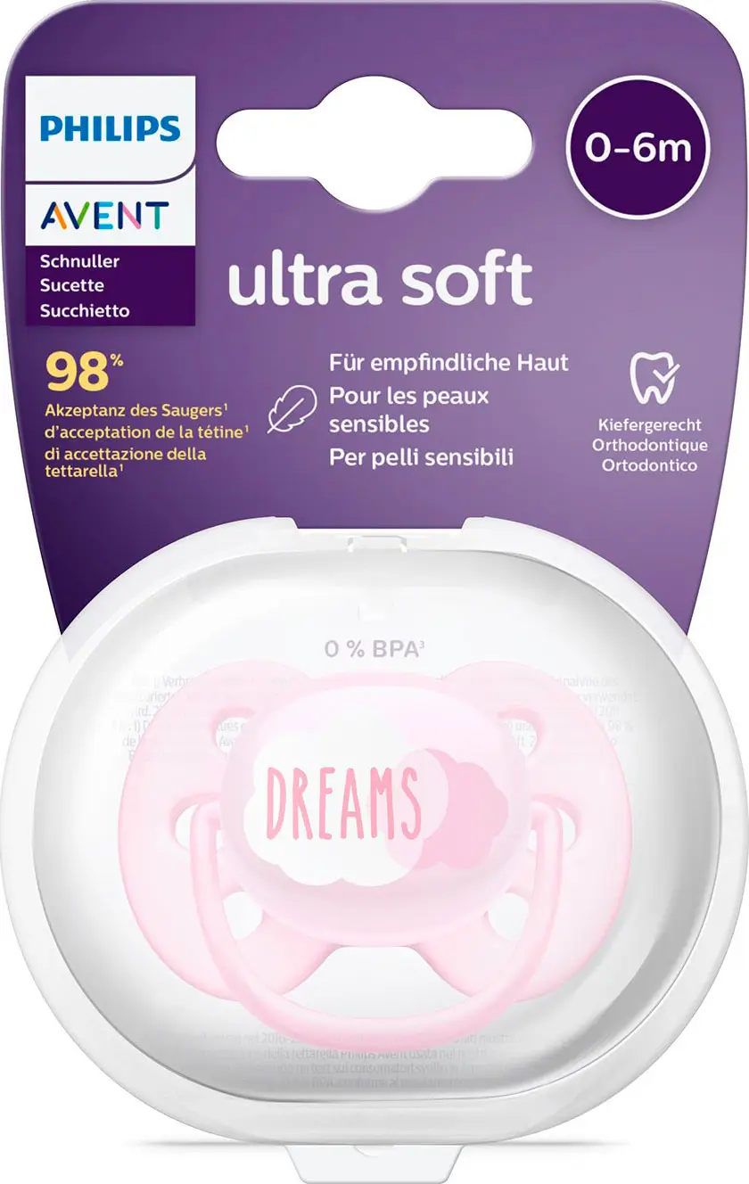 Пустышка Philips Avent Ultra Soft Dreams с футляром для хранения и стерилизации 0-6 месяцев