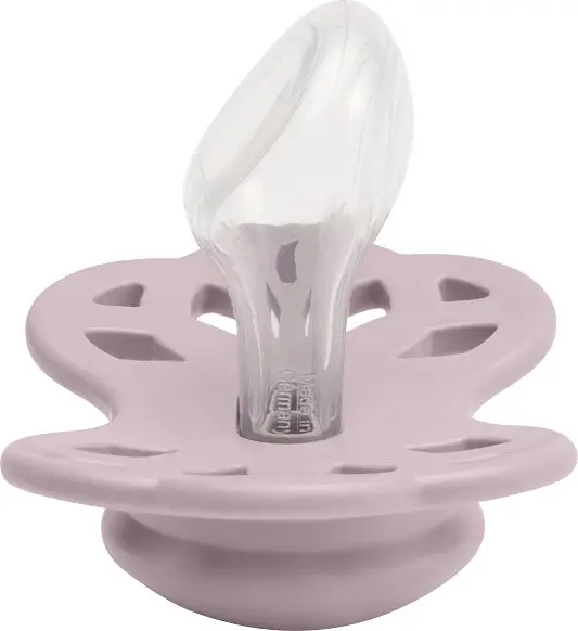 Дизайн пустышки Infinity вдохновлен красивой и непредсказуемой скандинавской природой. Анатомическая форма соска обеспечивает естественное прилегание пустышки к небу ребенка и удобное расположение языка. Пустышки BIBS изготавливаются из экологичных, на 100% безопасных материалов. Сосок выполнен из гипоаллергенного силикона без запаха и вкуса, а накладка (шилдик) — из полипропилена. Силиконовая пустышка обладает высокой прочностью и хорошо массирует дёсны во время прорезывания зубов. Дизайн накладки продуман таким образом, чтобы минимизировать контакт с чувствительной и нежной кожей вокруг рта ребенка. В каждой пустышке BIBS есть специальные вентиляционные клапаны, благодаря которым она является ортодонтически безопасной.