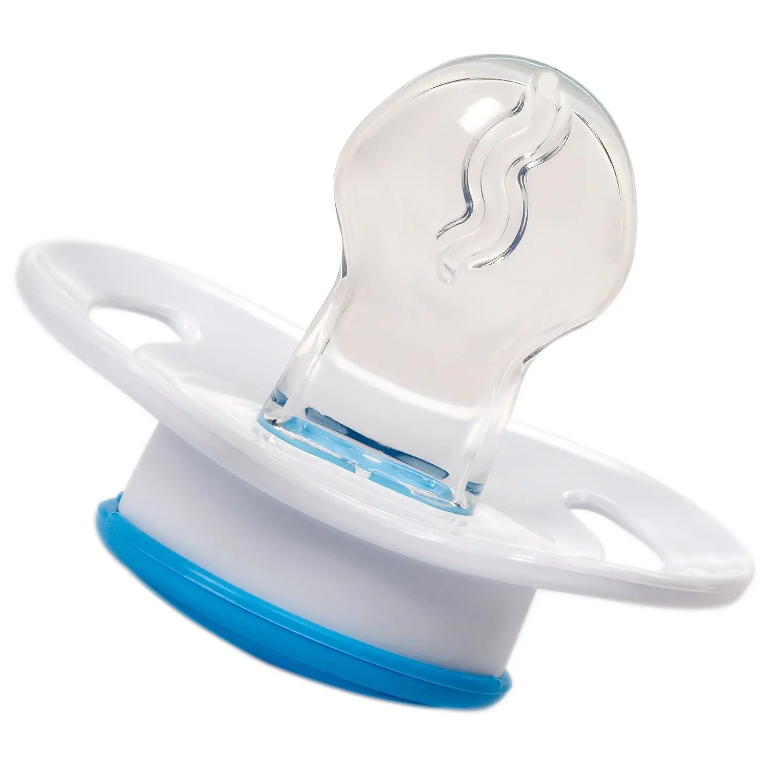 Пустышка выполнена из качественного и мягкого силикона, её форма разработана с учётом физиологических особенностей новорождённых и направлена на предотвращение проблем связанных с развитием зубов у малыша.