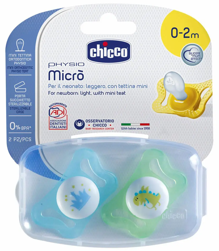 Пустышка силиконовая ортодонтическая Chicco Physio Micro для принца 2 штуки