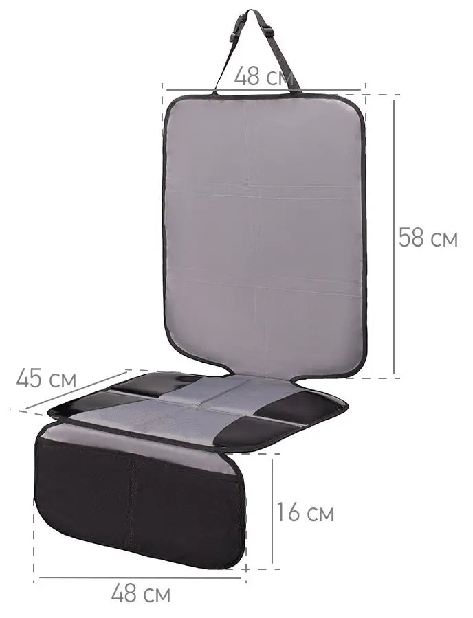 Изделие крепится за подголовник автомобильного кресла с помощью регулируемого ремня из строповой ленты на застежке фастекс. Установите ее под детское автокресло и салон вашей машины останется в первозданном виде - без царапин и внешних повреждений. Надежное крепление не позволит автокреслу скользить по сиденью.