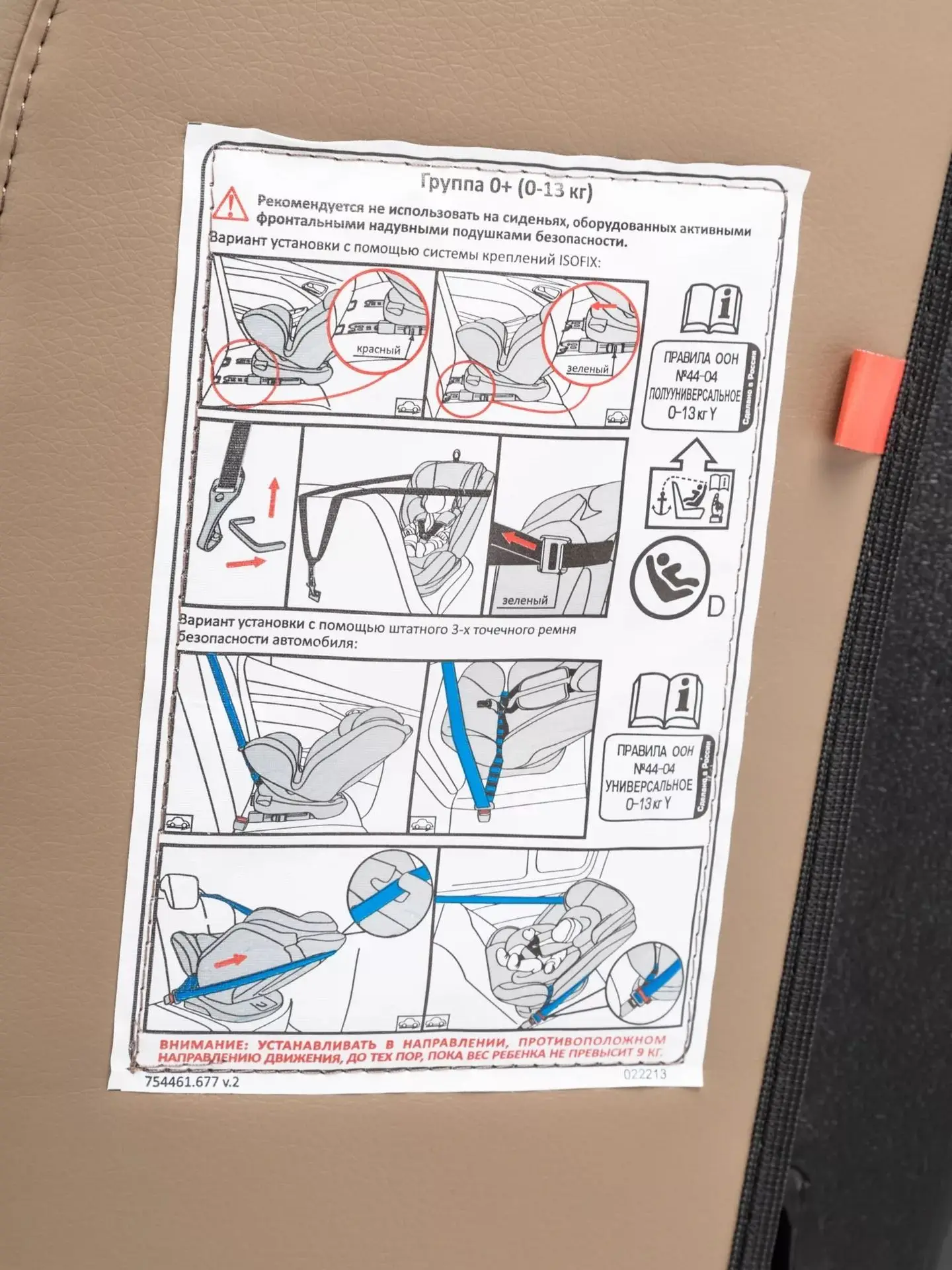 - перевозка детей в возрасте до 9 месяцев – только в положении «лицом против хода движения»;