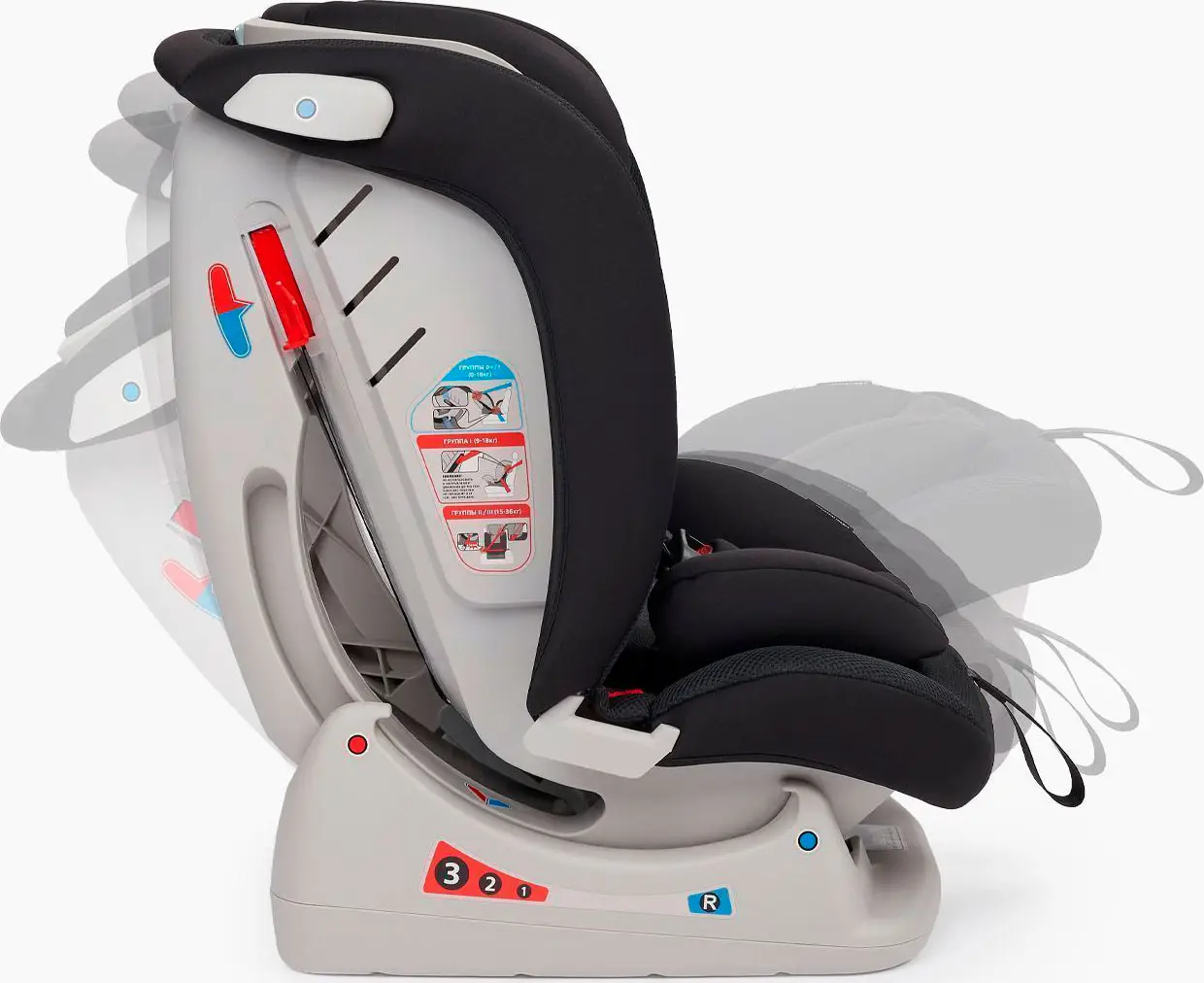 спинка регулируется в 3 положениях по наклону для придания автокреслу более лежачего положения.