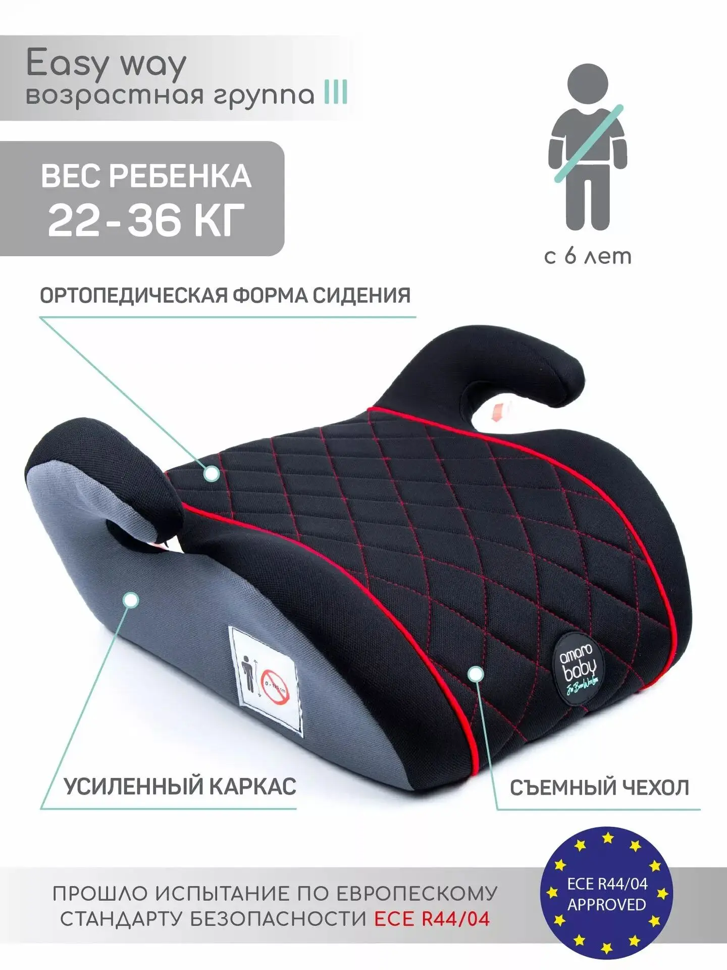 Бустер группа 3 (22-36 кг) AmaroBaby Easy way черный, красный
