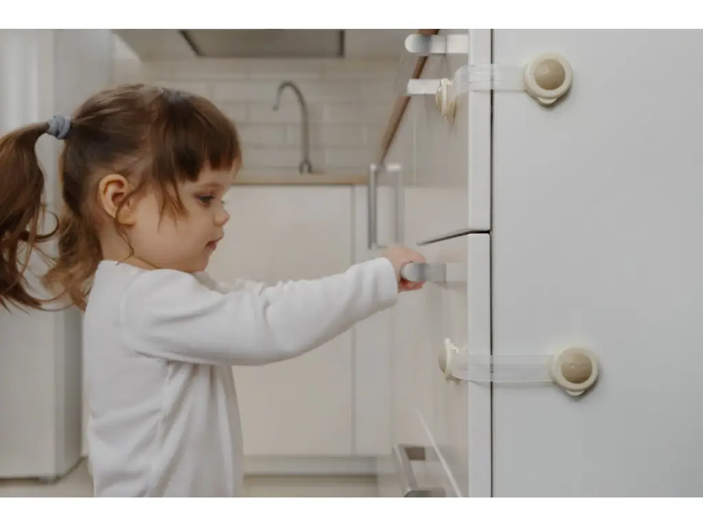 Гибкий универсальный блокиратор для дверей не позволит ребёнку открыть двери морозильной камеры, крышку унитаза, ящик комода с бытовой химией, а также кроха не поранит пальчики при попытке открыть дверь.