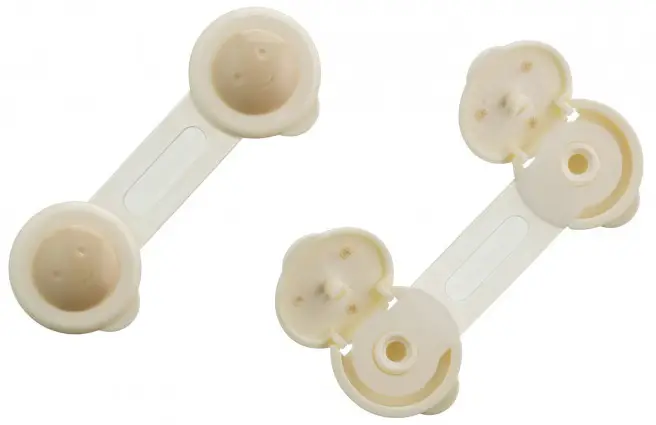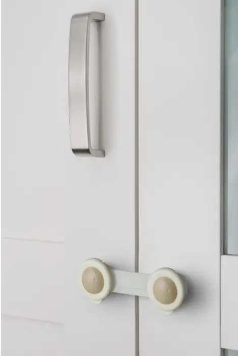 гибкие блокираторы препятствуют открыванию «запретных» мест в доме, могут крепиться как между двумя дверцами, так и на углах мебели.