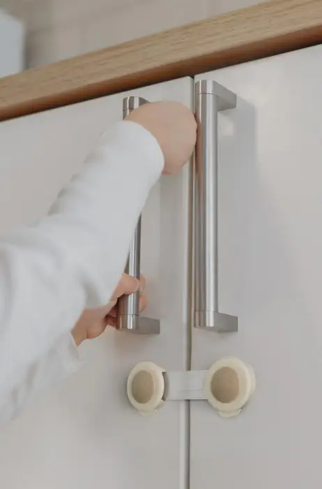 блокиратор для комода крепится на углы мебели и не дает малышу открывать ящики;