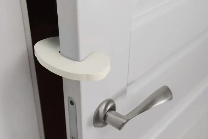 фиксатор двери не позволит ей захлопнуться и прищемить пальчики ребенка;