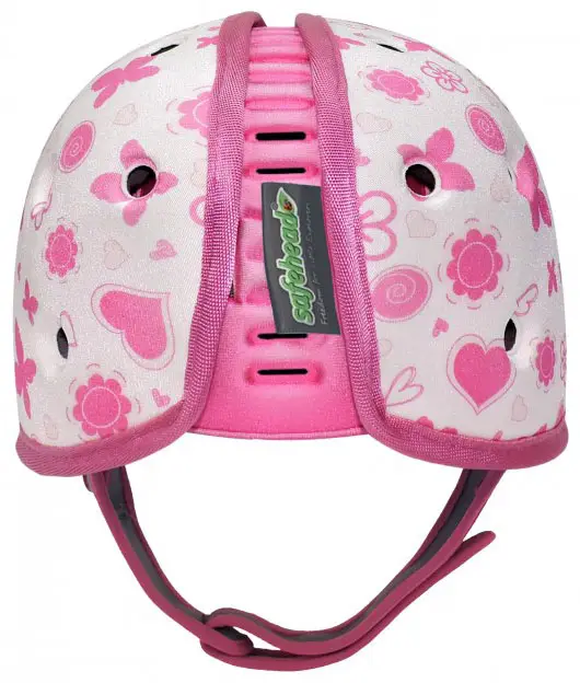 Мягкая шапка-шлем для защиты головы SafeheadBABY Бабочка белый с розовым