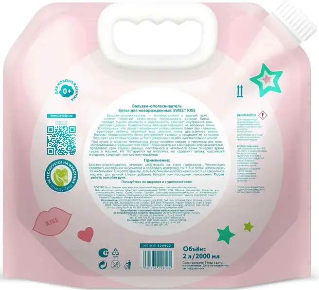 Бальзам ополаскиватель для белья Sweet Kiss Lovular, 2 л, арт. 429902