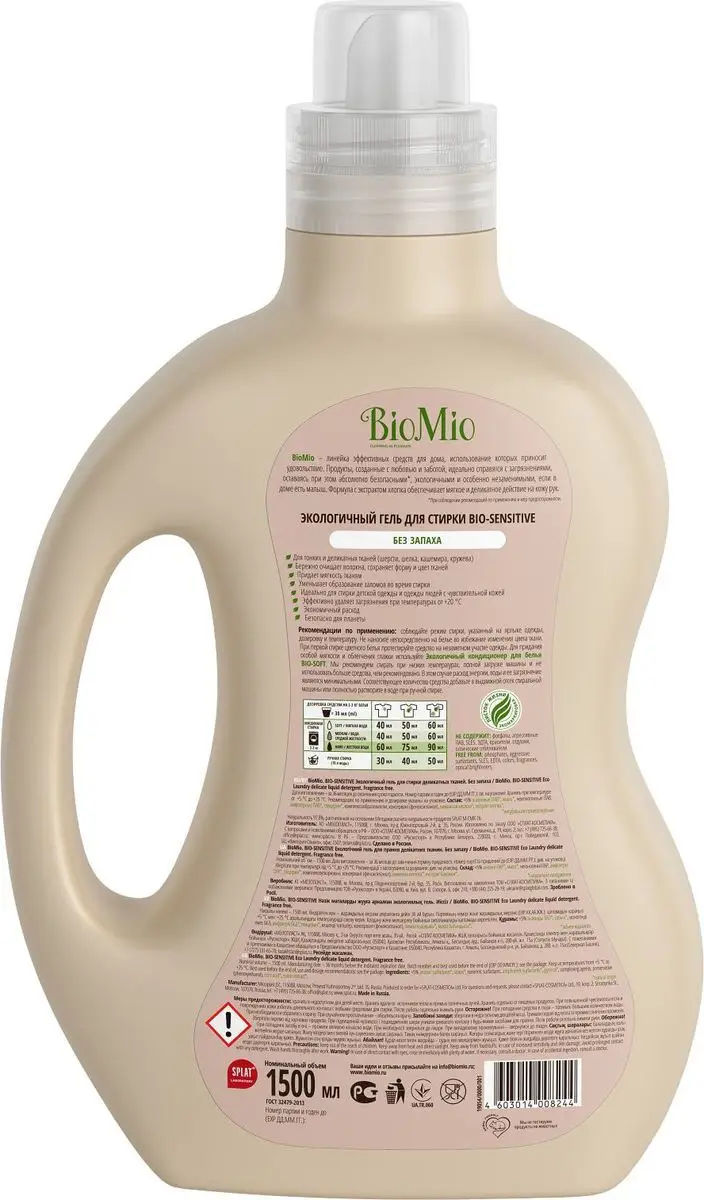 Гель для стирки деликатных тканей, концентрат, без запаха BioMio BIO-SENSITIVE 1500 мл