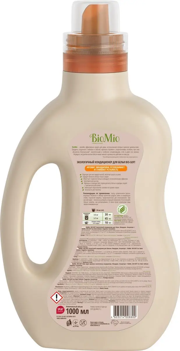 Экологичный кондиционер для белья био софт с эфирным маслом мандарина и экстрактом хлопка. Особенности: подходит для всех видов тканей, вкл...