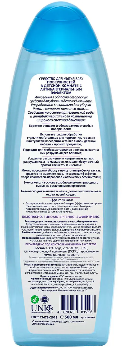 Средство для мытья всех поверхностей в детской комнате с антибактериальным эффектом AQA baby 500 мл