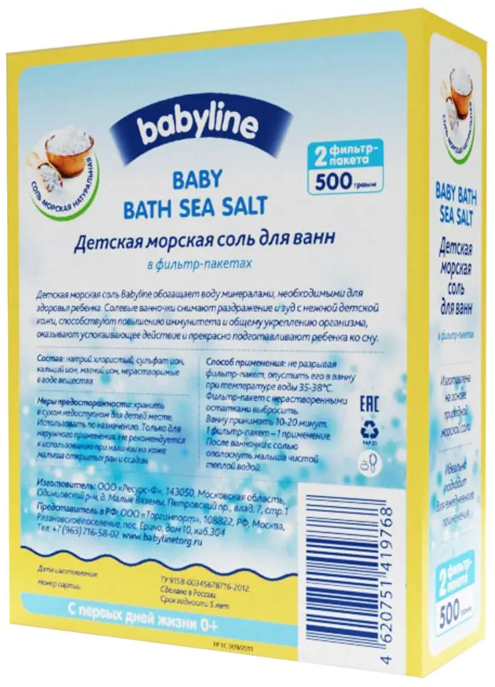 Детская морская соль для ванн Babyline Ромашка – в фильтр-пакетах. Пакет надежно удерживает нерастворимые соли, делая купание максимально пр...