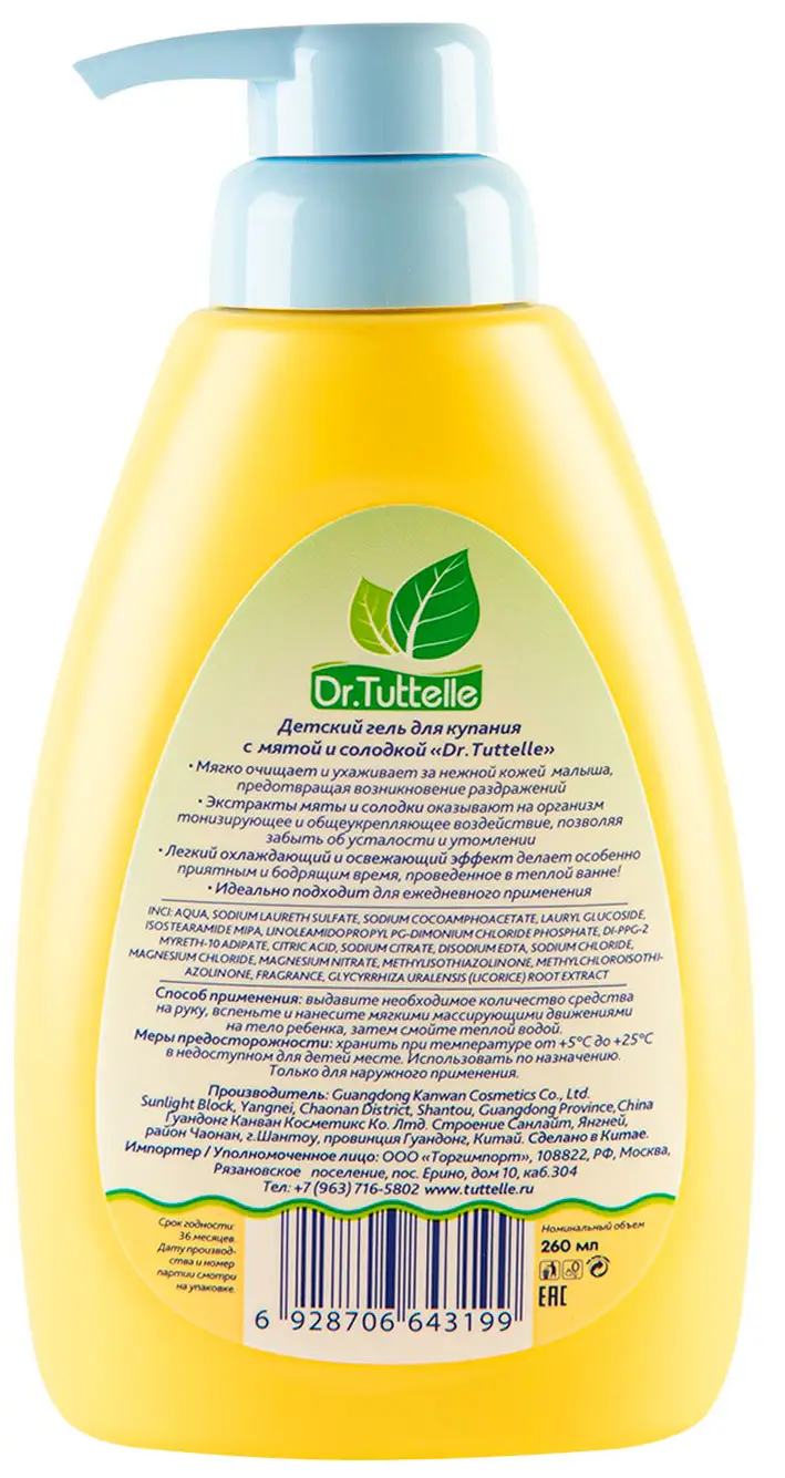 Dr.Tuttelle Гель для купания для детей с мятой и солодкой идеально подойдёт для купания малыша с первых дней жизни.